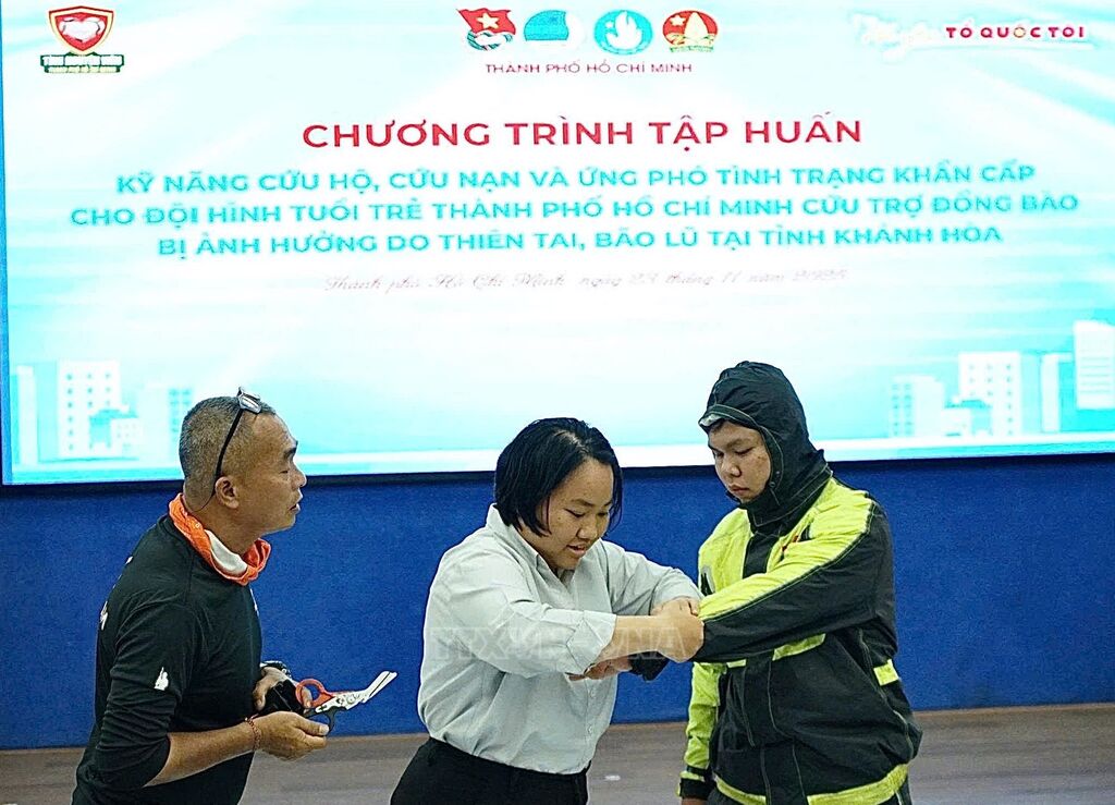 Trước giờ xuất phát, đại diện Thành Đoàn, Hội Liên hiệp Thanh niên Việt Nam Thành phố Hồ Chí Minh đã triển khai các nội dung tổ chức đội hình, lưu ý tiêu chuẩn, điều kiện và yêu cầu bảo đảm an toàn cho lực lượng khi tham gia hỗ trợ tại địa phương. Các chuyên gia cũng tiến hành tập huấn nghiệp vụ cứu nạn, cứu hộ cho tình nguyện viên.