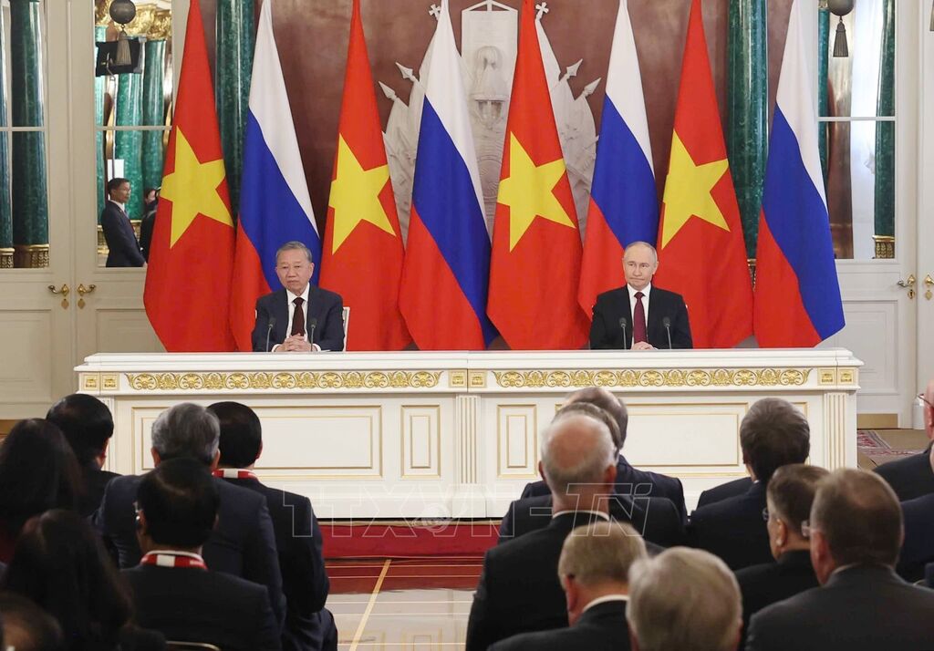 Theo Đặc phái viên TTXVN, nhân dịp Tổng Bí thư Ban Chấp hành Trung ương Đảng Cộng sản Việt Nam Tô Lâm thăm chính thức Liên bang Nga và tham dự Lễ Duyệt binh kỷ niệm 80 năm Ngày Chiến thắng trong Chiến tranh Vệ quốc vĩ đại từ ngày 8-11/5, TTXVN xin trân trọng giới thiệu toàn văn Tuyên bố chung về những định hướng lớn của quan hệ Đối tác Chiến lược toàn diện Việt Nam - Liên bang Nga trong giai đoạn hợp tác mới.
