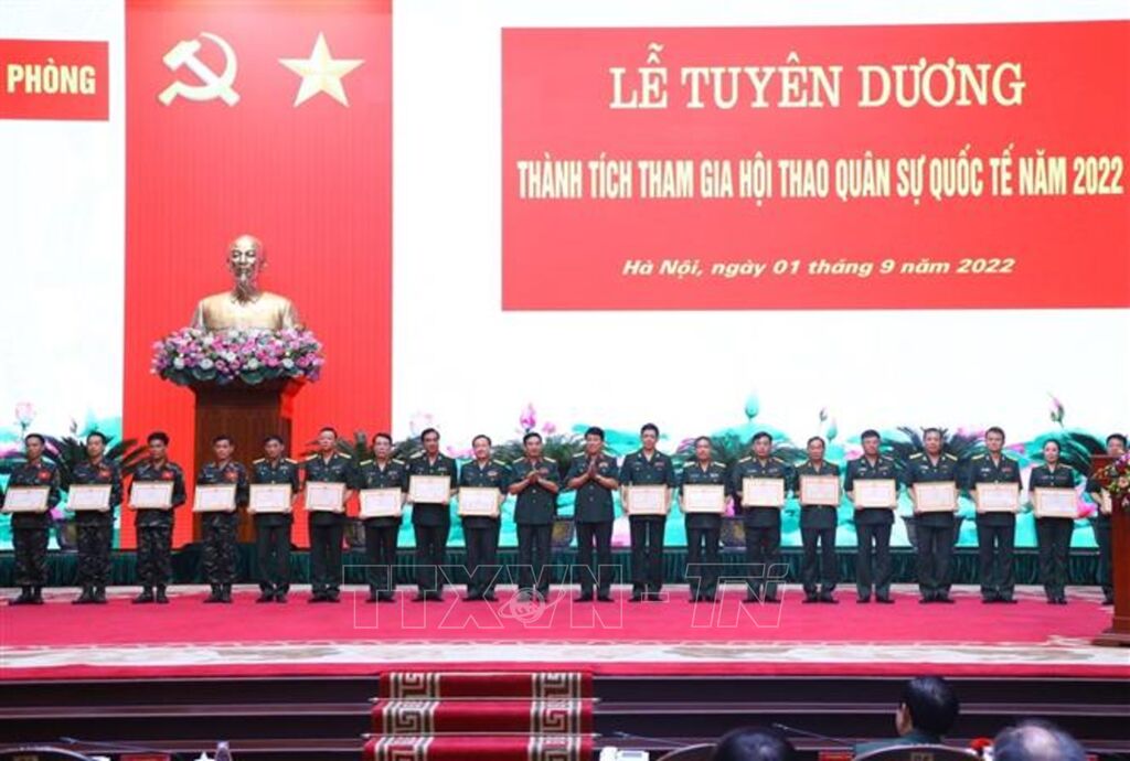 Nhân dịp này, 29 tập thể và 139 cá nhân đã được trao Bằng khen của Bộ trưởng Bộ Quốc phòng; 28 tập thể và 194 cá nhân được trao Bằng khen của Tổng Tham mưu trưởng Quân đội nhân dân Việt Nam; 23 tập thể và 63 cá nhân được trao Bằng khen của Chủ nhiệm Tổng cục Chính trị Quân đội nhân dân Việt Nam vì đã có thành tích xuất sắc trong chỉ đạo, tổ chức, tham mưu huấn luyện, tham gia và bảo đảm cho Hội thao quân sự quốc tế năm 2022./.