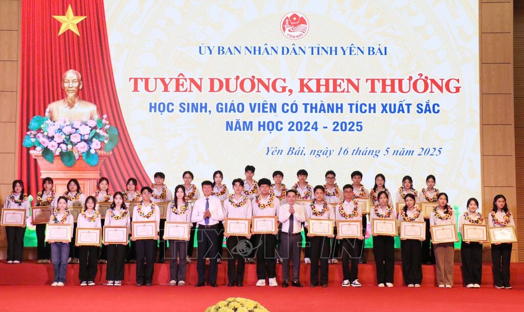 218 học sinh và giáo viên có thành tích xuất sắc năm học 2024 - 2025 đã được UBND tỉnh Yên Bái tổ chức Lễ tuyên dương tối 16/5.