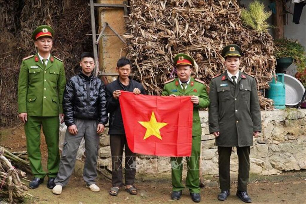 Không chỉ bảo đảm an ninh trật tự, cán bộ Công an xã còn trực tiếp đến từng thôn bản tuyên truyền về cuộc bầu cử, trao tặng cờ Tổ quốc cho các hộ gia đình. Những lá cờ đỏ sao vàng được treo trang trọng trước mỗi ngôi nhà, tạo nên không khí phấn khởi hướng về ngày hội lớn của đất nước.