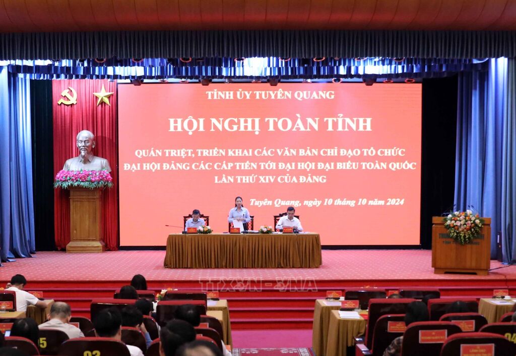 Tại hội nghị, đại diện lãnh đạo Tỉnh ủy Tuyên Quang đã triển khai Hướng dẫn số 27-HD/BTCTW ngày 26/8/2024 của Ban Tổ chức Trung ương hướng dẫn một số nội dung Chỉ thị số 35-CT/TW ngày 14/6/2024 của Bộ Chính trị về Đại hội Đảng bộ các cấp tiến tới Đại hội đại biểu toàn quốc lần thứ XIV của Đảng; Kế hoạch số 525-KH/TU ngày 19/9/2024 của Ban Chấp hành Đảng bộ tỉnh (khóa XVII) thực hiện Chỉ thị số 35-CT/TW của Bộ Chính trị.