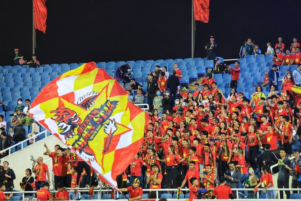 Cổ động viên đội tuyển Việt Nam trên sân vận động Quốc gia Mỹ Đình. (Ảnh: Tuấn Anh/TTXVN)