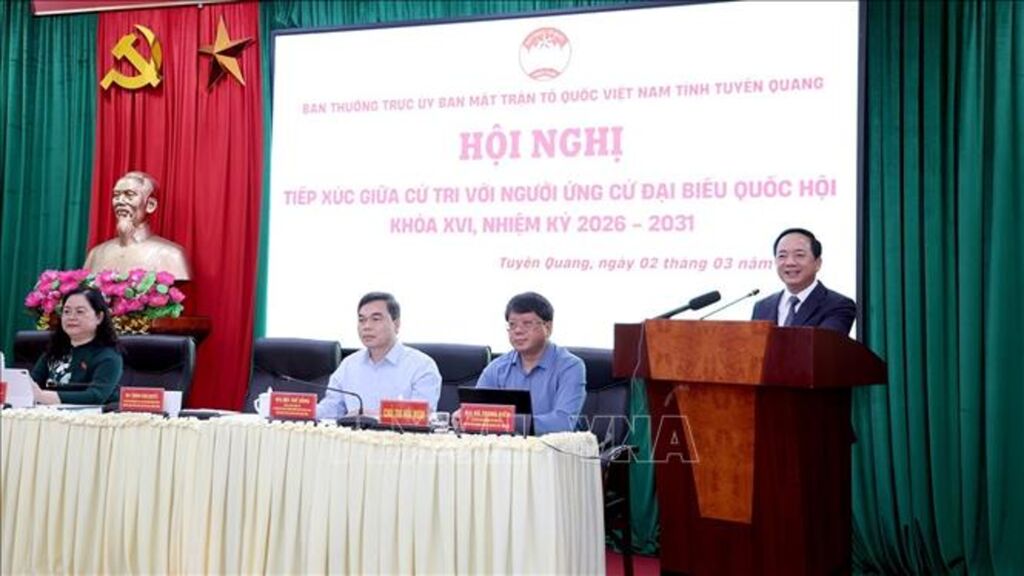 Sáng 2/3, Ban Thường trực Ủy ban MTTQ Việt Nam tỉnh Tuyên Quang tổ chức Hội nghị trực tuyến tiếp xúc cử tri với người ứng cử đại biểu Quốc hội khóa XVI, đơn vị bầu cử số 3. Dự và theo dõi hội nghị có ông Trịnh Văn Quyết, Ủy viên Bộ Chính trị, Bí thư Trung ương Đảng, Trưởng Ban Tuyên giáo và Dân vận Trung ương; ông Hầu A Lềnh, Ủy viên Trung ương Đảng, Bí thư Tỉnh ủy Tuyên Quang.
