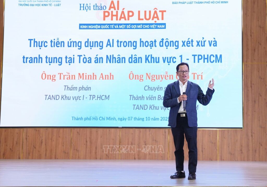 Ông Trần Minh Anh, Thẩm phán Tòa án nhân dân Khu vực 1, Thành phố Hồ Chí Minh cho biết: Từ năm 2021, Tòa án nhân dân Tối cao đã xây dựng và phát triển mô hình AI tiên tiến nhất hiện nay của ngành.