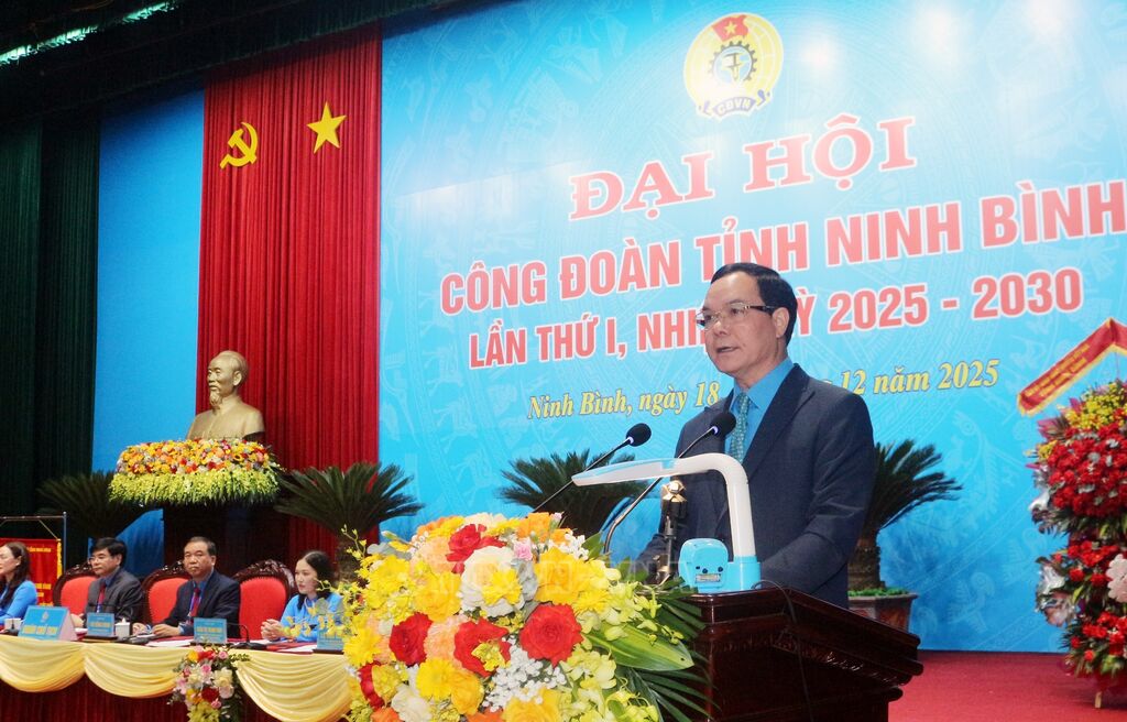 Tại Đại hội, ông Nguyễn Đình Khang, Phó Chủ tịch Ủy ban Trung ương MTTQ Việt Nam, Chủ tịch Tổng Liên đoàn lao động Việt Nam đã biểu dương, ghi nhận và đánh giá cao những thành tích mà các cấp Công đoàn tỉnh Ninh Bình đã đạt được, góp phần vào kết quả và thành tích chung của phong trào công nhân, viên chức, lao động và hoạt động công đoàn cả nước. Nhiệm kỳ tới, Công đoàn tỉnh Ninh Bình cần đổi mới tổ chức và phương thức lãnh đạo, chỉ đạo hoạt động trong điều kiện sắp xếp tổ chức bộ máy tinh gọn; trong đó xây dựng và vận hành cơ chế quản lý, điều hành khoa học, chặt chẽ, linh hoạt; đẩy mạnh chuyển đổi số; ưu tiên xây dựng công đoàn số, số hóa dữ liệu đoàn viên và tài chính công đoàn, tăng cường ứng dụng công nghệ trong chỉ đạo điều hành và tổ chức các hoạt động, bảo đảm thống nhất, thông suốt, hiệu lực và hiệu quả.