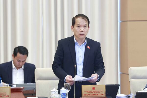 Trước khi tiến hành thảo luận, Chủ nhiệm Ủy ban Kinh tế của Quốc hội Vũ Hồng Thanh trình bày báo cáo về vấn đề xin ý kiến Ủy ban Thường vụ Quốc hội.