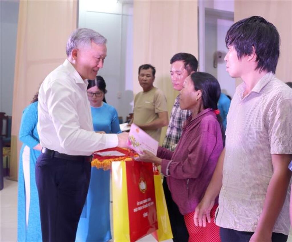 TTXVN - Ngày 19/1, tại thành phố Tuy Hòa, Ủy viên Bộ Chính trị, Bí thư Trung ương Đảng, Chánh án Tòa án nhân dân Tối cao Nguyễn Hòa Bình tham dự chương trình Tết sum vầy - Xuân chia sẻ do Tổng Liên đoàn Lao động Việt Nam, Ủy ban Trung ương Mặt trận Tổ quốc Việt Nam và Tỉnh ủy Phú Yên phối hợp tổ chức; thăm hỏi và tặng quà các gia đình chính sách nhân dịp Xuân Giáp Thìn năm 2024