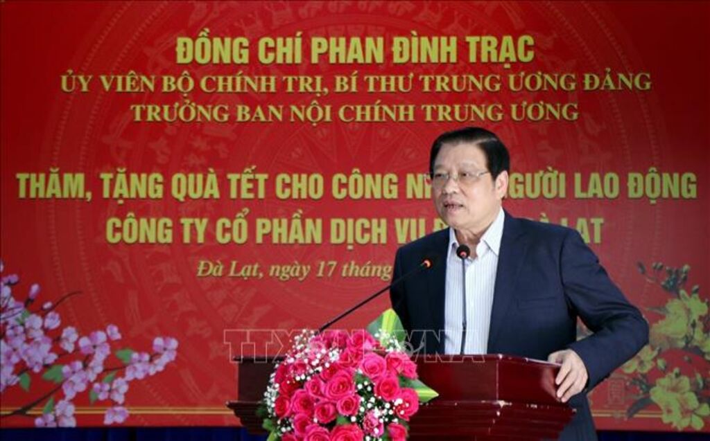 Cùng ngày, Trưởng Ban Nội chính Trung ương Phan Đình Trạc và Đoàn công tác đến thăm, trao quà Tết tặng hai gia đình người có công tiêu biểu tại thành phố Đà Lạt; trao quà Tết cho tập thể Công ty Cổ phần dịch vụ đô thị Đà Lạt và 300 phần quà Tết cho công nhân, người lao động của đơn vị này. Đồng thời, Trưởng Ban Nội chính Trung ương đề nghị lãnh đạo Công ty tiếp tục quan tâm hơn nữa đến đời sống vật chất, tinh thần người lao động, bố trí thời gian thích hợp để người lao động được vui Xuân, đón Tết sum vầy cùng gia đình./.