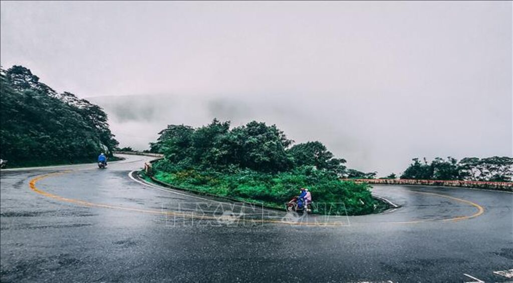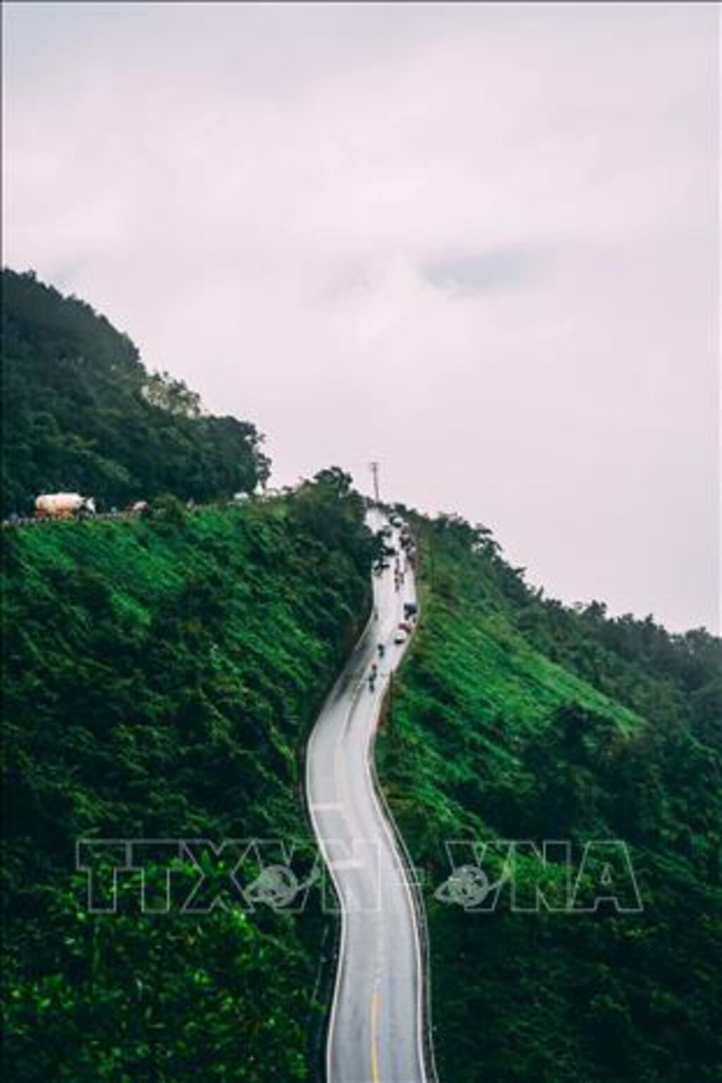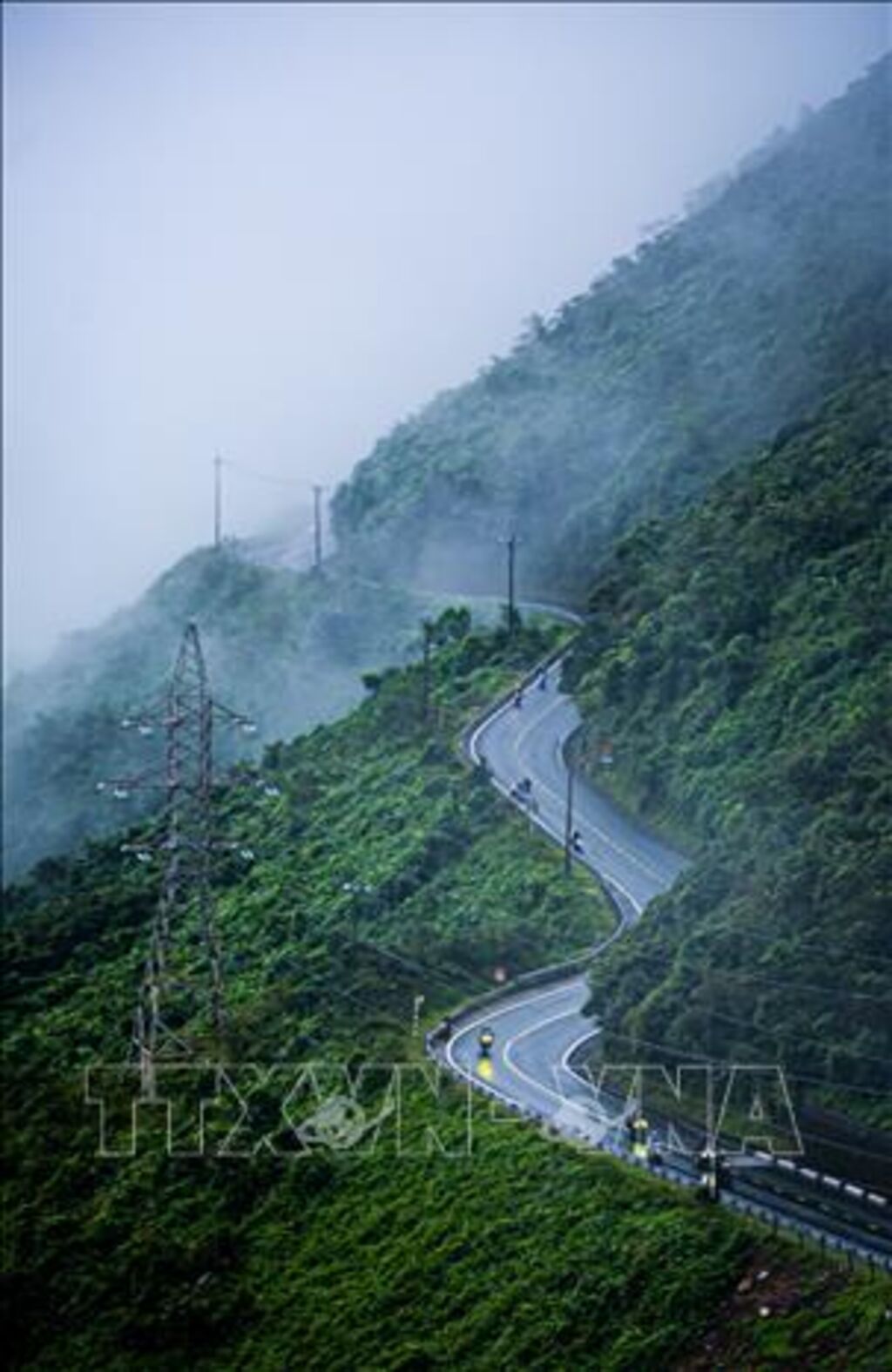 Đèo Hải Vân có những đoạn đường dốc cao, thách thức sự chinh phục của những tính đồ đam mê xê dịch. (Ảnh: Văn Dũng/TTXVN)