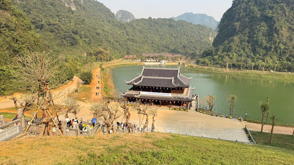 Từ Tam Chúc, di chuyển khoảng một giờ sẽ tới chùa Bái Đính. Đây là điểm đến trong ngày thứ hai của gia đình anh Tuấn. Dịp đầu năm, nơi đây mới khai trương Khu du lịch Thung Ui, cách chùa Bái Đính khoảng 3 km.