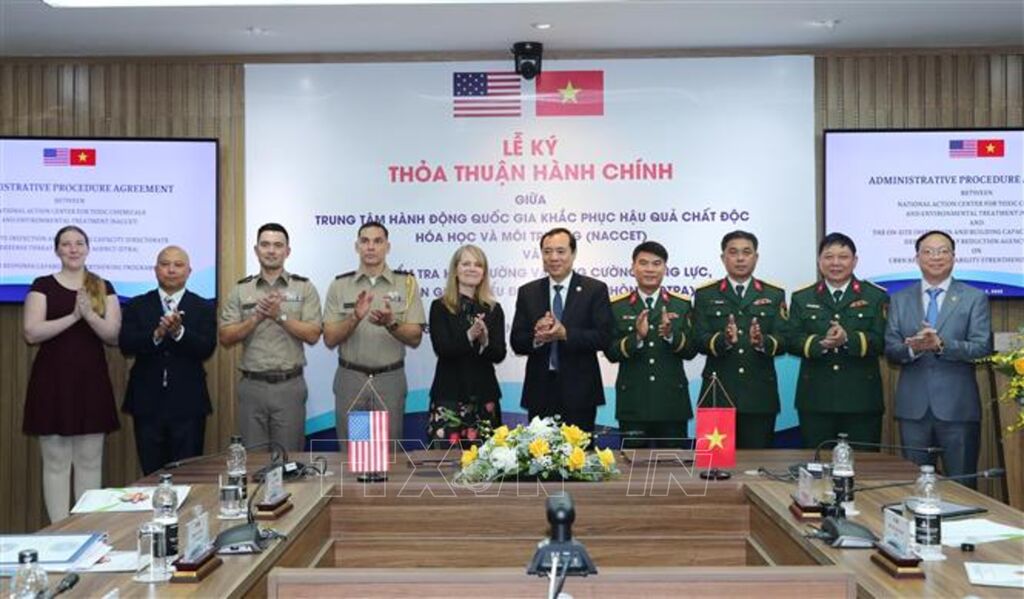 Chiều 3/6, tại Hà Nội, Trung tâm Hành động quốc gia khắc phục hậu quả chất độc hóa học và môi trường (NACCET) và Cục Kiểm tra hiện trường và tăng cường năng lực, Cơ quan Giảm thiểu các mối đe dọa quốc phòng (DTRA) của Hoa Kỳ đã tiến hành ký kết Thỏa thuận hành chính về hợp tác tăng cường năng lực ứng phó các sự cố liên quan đến hóa chất, sinh học, phóng xạ, hạt nhân (CBRN).