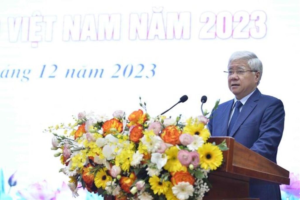 TTXVN - Sáng 6/12, tại Hà Nội, Ban Thường trực Ủy ban Trung ương Mặt trận Tổ quốc Việt Nam phối hợp với Liên hiệp các Hội Khoa học Kỹ thuật Việt Nam, Bộ Khoa học và Công nghệ tổ chức Lễ công bố Sách vàng Sáng tạo Việt Nam năm 2023.