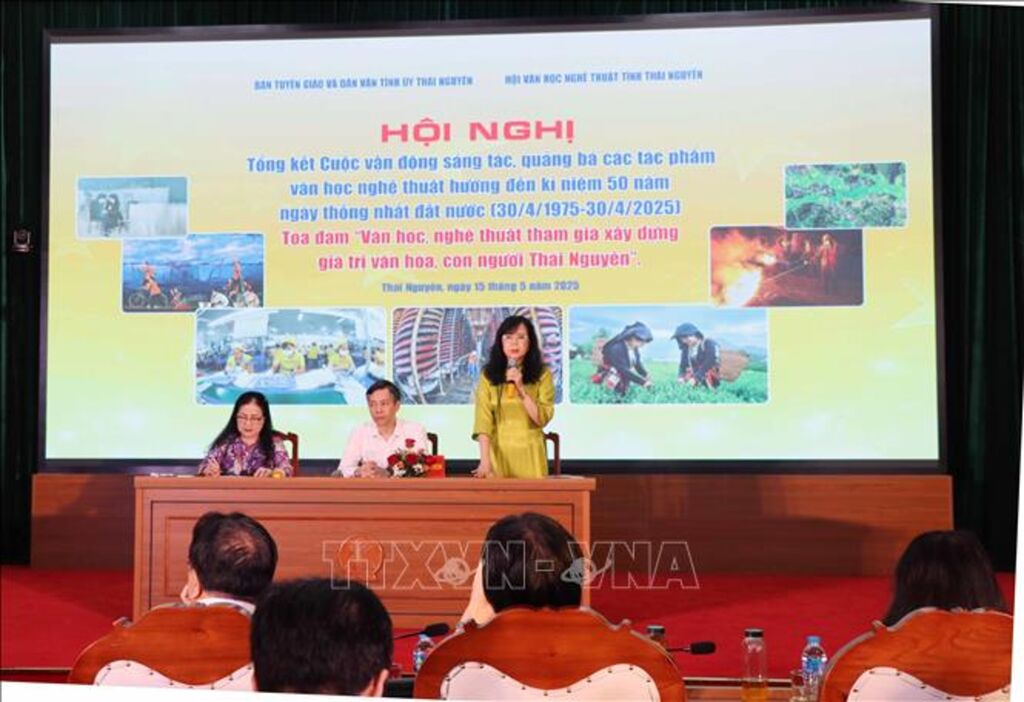 Ngày 15/5, Ban Tuyên giáo và Dân vận Tỉnh ủy Thái Nguyên phối hợp Hội Văn học nghệ thuật tỉnh tổ chức tọa đàm chủ đề “Văn học, nghệ thuật tham gia xây dựng giá trị văn hóa, con người Thái Nguyên”. Đại diện lãnh đạo Ban Tuyên giáo và Dân vận Trung ương, Hội đồng Lý luận Trung ương, Hội Mỹ thuật Việt Nam cùng đông đảo nhà nghiên cứu, nghệ sĩ và những người hoạt động trong lĩnh vực văn học nghệ thuật tham dự sự kiện.