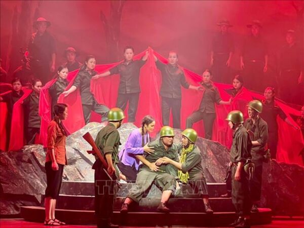 TTXVN - Tối 9/11, tại Hà Nội, Nhà hát Tuổi trẻ chính thức công diễn vở nhạc kịch “Viên đá ngũ sắc” - vở diễn lấy cảm hứng từ câu chuyện có thật, kể về hành trình kiên cường của "Chú lính chì" Thiện Nhân, người mẹ nuôi Trần Mai Anh (Mẹ Còi) và đội ngũ các bác sỹ - đã cùng nhau mạnh mẽ vượt qua một chặng đường dài.