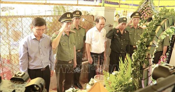 Cùng ngày 12/6, Đoàn công tác của Bộ Công an do Thượng tướng Lương Tam Quang, Ủy viên Trung ương Đảng, Thứ trưởng Bộ Công an dẫn đầu đã đến thăm hỏi, chia buồn với gia đình 4 cán bộ, chiến sỹ Công an xã hy sinh khi làm nhiệm vụ.