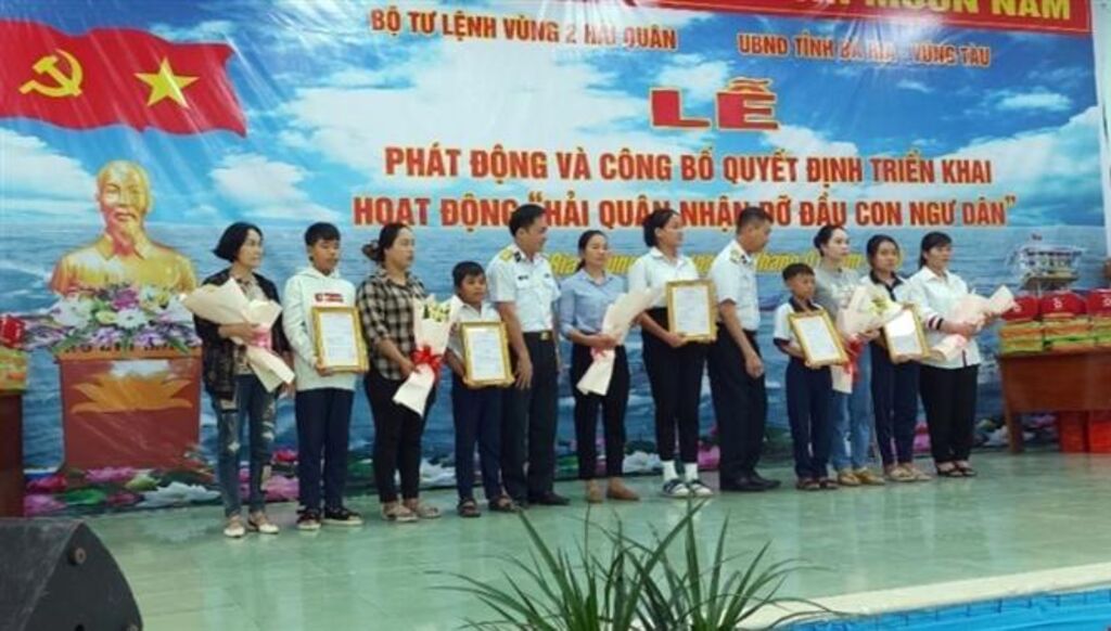 (TTXVN) Ngày 10/1, Đại tá Vũ Anh Tuấn, Chính ủy Vùng 2 Hải quân cho biết, các đơn vị trực thuộc của Vùng đã nhận đỡ đầu 5 học sinh là con ngư dân có hoàn cảnh đặc biệt khó khăn của hai huyện là Xuyên Mộc, Đất Đỏ (tỉnh Bà Rịa-Vũng Tàu).