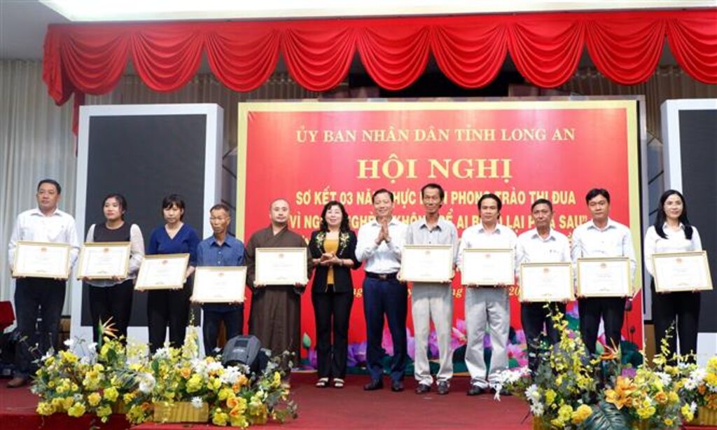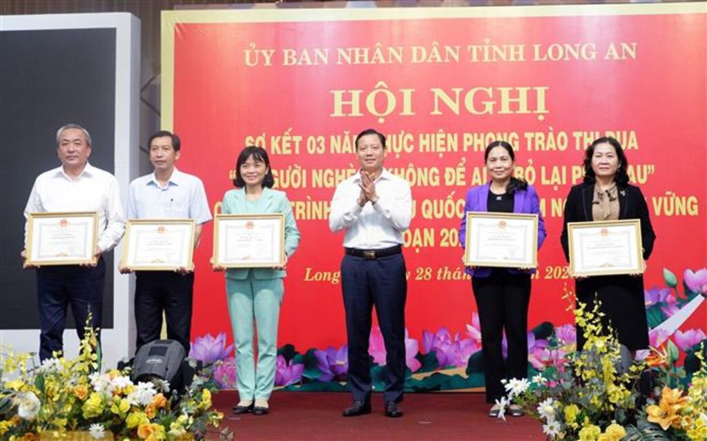 Dịp này, UBND tỉnh Long An tặng Bằng khen 5 tập thể và 10 cá nhân có thành tích tiêu biểu trong phong trào thi đua "Vì người nghèo - Không để ai bị bỏ lại phía sau" giai đoạn 2021 - 2023./.