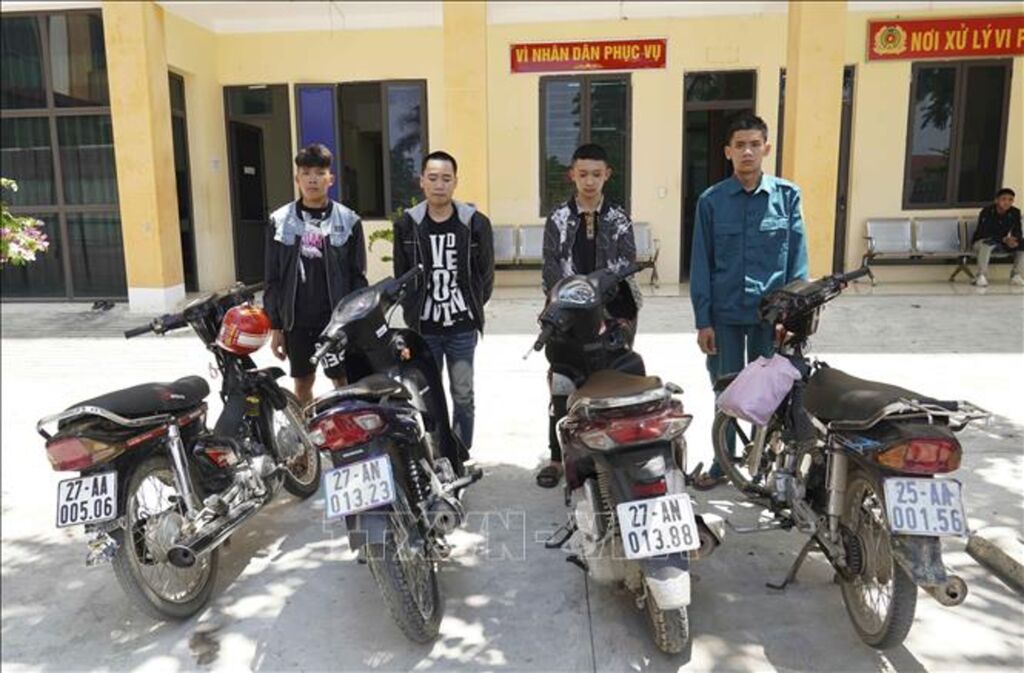 Tại cơ quan Công an, các đối tượng khai nhận đã nhiều lần cùng nhóm bạn tụ tập chạy xe lạng lách, bốc đầu, mang theo hung khí, vi phạm trật tự an toàn giao thông tại nhiều khu vực tại thành phố Điện Biên Phủ và huyện Điện Biên, sau đó quay video và đăng tải lên mạng xã hội. Tổ tuần tra kiểm soát đã lập biên bản vi phạm hành chính và tạm giữ phương tiện 27AN-013.88.