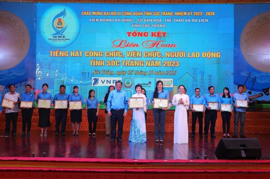 TTXVN - Tối 5/10, Liên đoàn Lao động tỉnh Sóc Trăng phối hợp Sở Văn hóa, thể thao và Du lịch tỉnh tổ chức Bế mạc Liên hoan "Tiếng hát công chức, viên chức, người lao động” năm 2023.