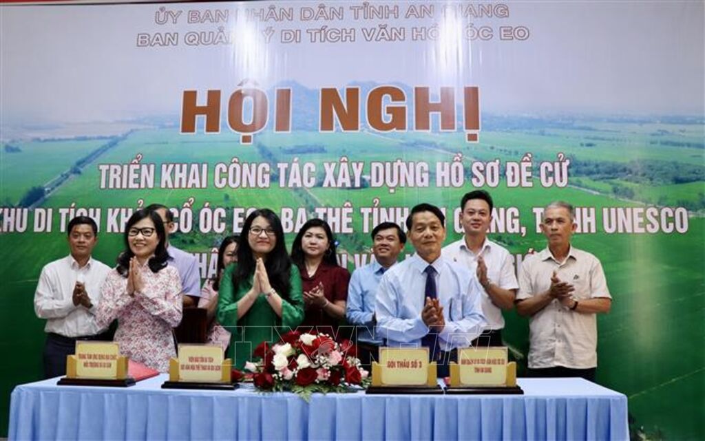 Tại hội nghị, Ban Quản lý Di tích văn hóa Óc Eo - Ba Thê công bố liên danh Viện Bảo tồn di tích - Trung tâm Nghiên cứu ứng dụng địa chất, di sản và môi trường - Trường Đại học Khoa học Xã hội và Nhân văn Thành phố Hồ Chí Minh trúng gói thầu số 3 “Lập hồ sơ đề cử và kế hoạch quản lý Khu di tích khảo cổ Óc Eo - Ba Thê tỉnh An Giang trình UNESCO công nhận là Di sản văn hóa thế giới”.