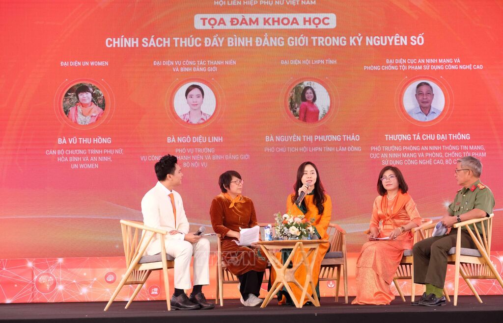 Phó Chủ tịch Hội Liên hiệp Phụ nữ Việt Nam Nguyễn Thị Minh Hương khẳng định, năm 2025 chứng kiến dấu mốc quan trọng về chuyển đổi số và an ninh mạng của Việt Nam. Trước thực trạng đó, Hội Liên hiệp Phụ nữ Việt Nam đã phát động phụ nữ hưởng ứng phong trào Bình dân học vụ số gắn với phong trào thi đua “Xây dựng người phụ nữ Việt Nam thời đại”; tổ chức nhiều lớp tập huấn nâng cao kỹ năng ứng dụng AI để gia tăng hiệu quả công việc cho gần 10.000 lượt cán bộ Hội các cấp. Thời gian tới, các cấp Hội tiếp tục thực hiện cuộc vận động “Xây dựng gia đình 5 không, 3 sạch, 3 an”, trong đó 3 an là an toàn, an tâm, an sinh. Đặc biệt là an toàn cả trên không gian thực và không gian số, các cấp Hội đẩy mạnh ứng dụng công nghệ thông tin, chuyển đổi số trong hoạt động Hội và hỗ trợ phụ nữ, phối hợp xây dựng “không gian mạng an toàn cho phụ nữ và trẻ em, không để bị quấy rối trên không gian mạng”. Hoạt động này góp phần đảm bảo môi trường không bạo lực, không xâm hại, không gian số an toàn, thân thiện với phụ nữ và trẻ em gái.