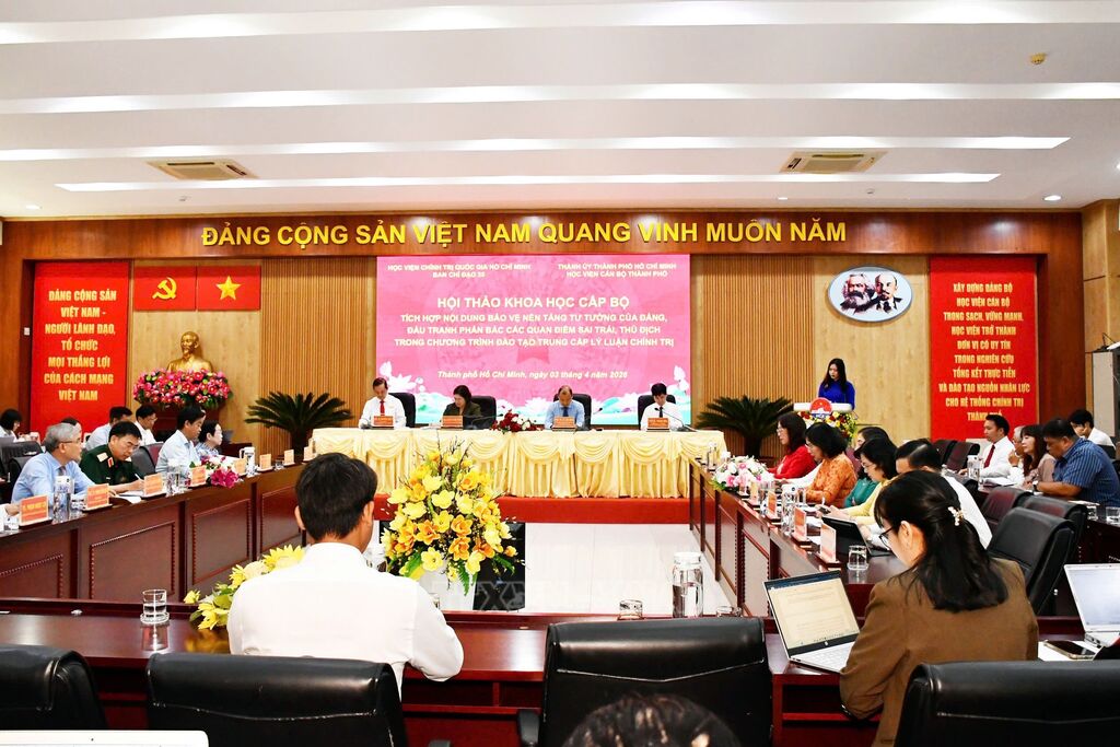 Việc tích hợp nội dung bảo vệ nền tảng tư tưởng của Đảng trong chương trình đào tạo Trung cấp lý luận chính trị là yêu cầu cấp thiết nhằm xây dựng “lá chắn tư tưởng” và nâng cao năng lực vận dụng lý luận vào thực tiễn đấu tranh tư tưởng ở cơ sở. Thông tin trên được chia sẻ tại Hội thảo khoa học “Tích hợp nội dung bảo vệ nền tảng tư tưởng của Đảng, đấu tranh phản bác các quan điểm sai trái thù địch trong chương trình đào tạo Trung cấp lý luận chính trị”, do Ban Chỉ đạo 35 Học viện Chính trị quốc gia Hồ Chí Minh và Học viện Cán bộ Thành phố Hồ Chí Minh tổ chức tại Thành phố ngày 3/4.