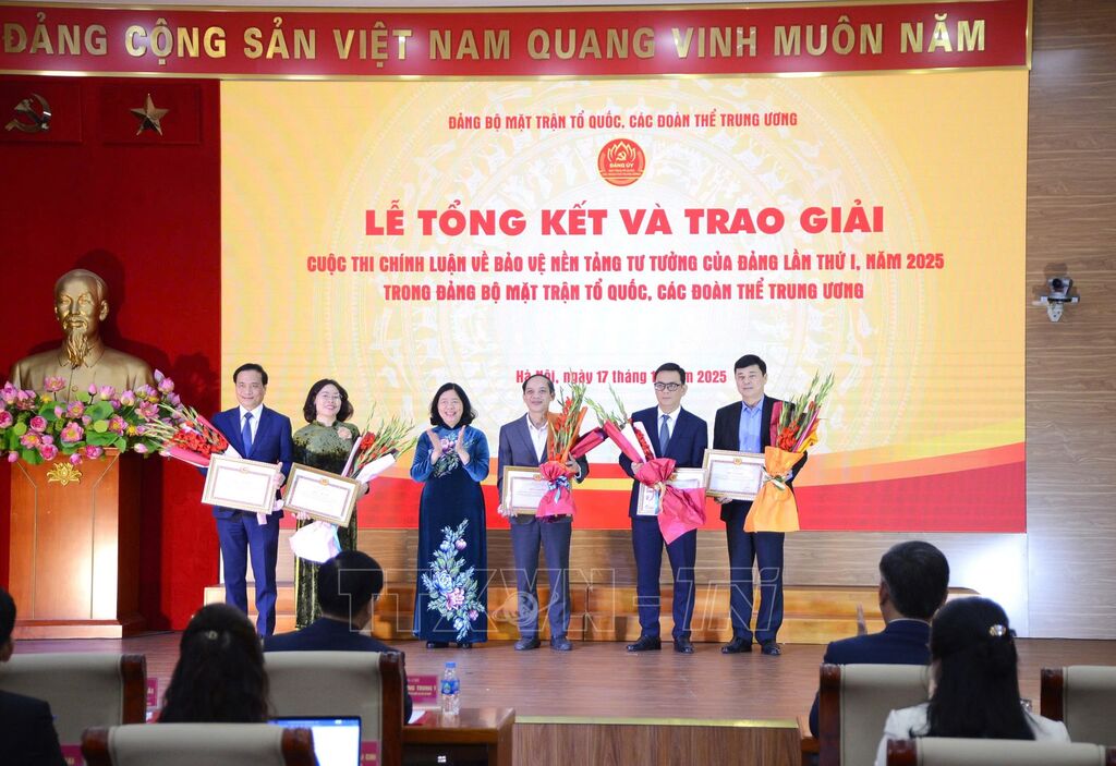 Lễ trao giải Cuộc thi chính luận về bảo vệ nền tảng tư tưởng của Đảng trong Đảng bộ Mặt trận Tổ quốc (MTTQ), các đoàn thể Trung ương lần thứ I, năm 2025 đã được tổ chức chiều 17/12, tại Hà Nội.