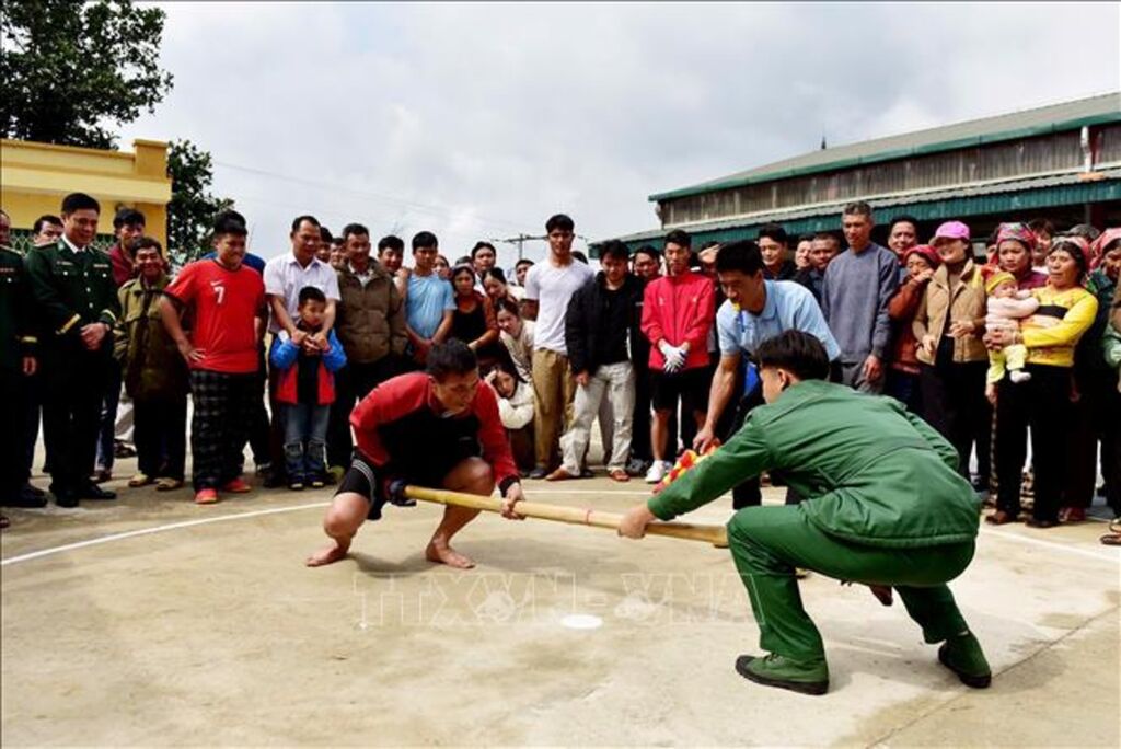 Trong Ngày hội còn diễn ra các trò chơi dân gian như kéo co, đẩy gậy, thu hút đông đảo cán bộ, chiến sĩ và nhân dân tham gia, tạo nên không khí sôi nổi, vui tươi, thắm tình quân - dân, góp phần lan tỏa sâu rộng ý nghĩa của “Ngày hội Biên phòng toàn dân” ở xã Thu Lũm.