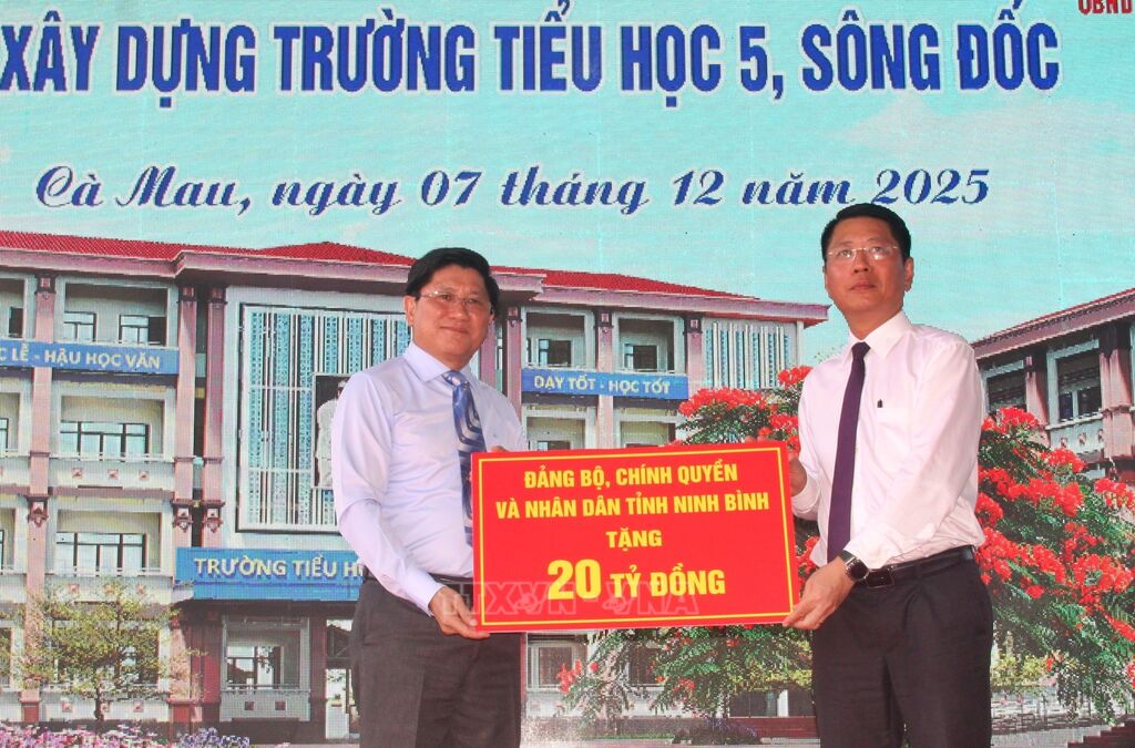 Chiều 7/12, UBND tỉnh Cà Mau tổ chức lễ khởi công xây dựng Trường Tiểu học 5, Sông Đốc (xã Sông Đốc) để dạy học 2 buổi/ngày, tổ chức bán trú và đạt chuẩn quốc gia. Công trình có tổng vốn đầu tư hơn 50 tỷ đồng, trong đó Đảng bộ, chính quyền và nhân dân tỉnh Ninh Bình hỗ trợ 20 tỷ đồng. Tham dự lễ khởi công có lãnh đạo UBND tỉnh cùng các sở, ngành của hai tỉnh Cà Mau và Ninh Bình.