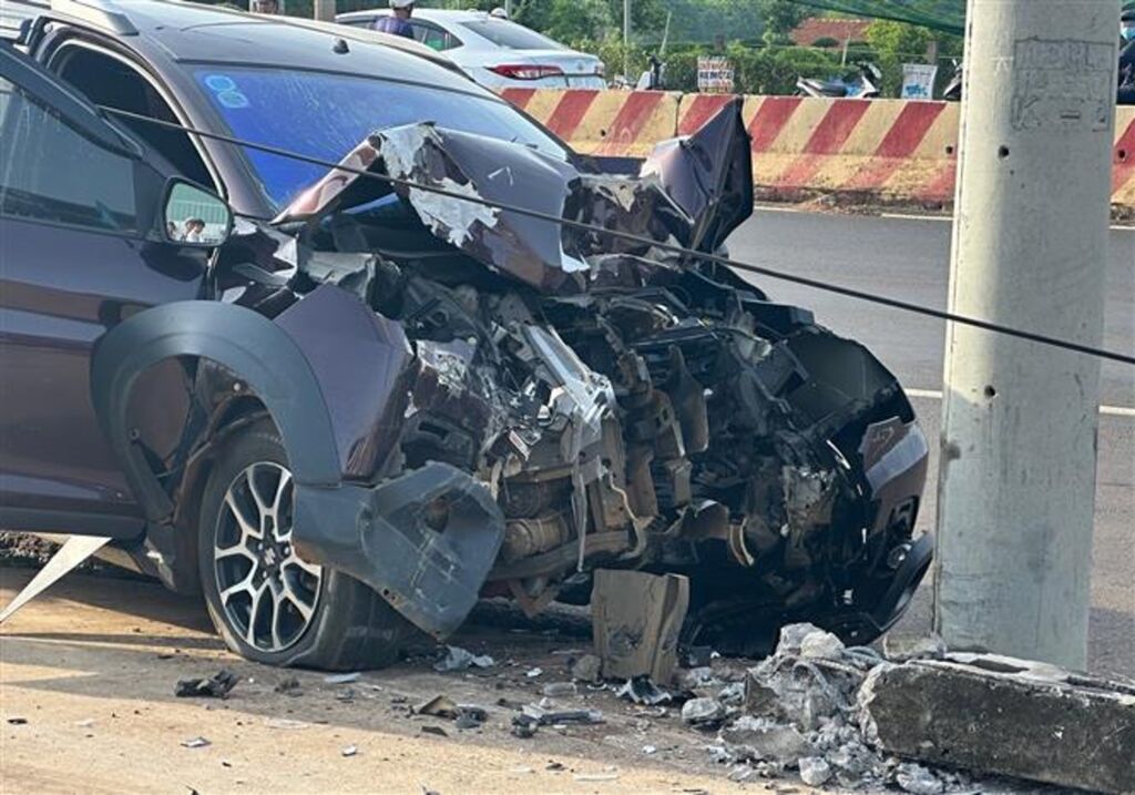 Khi đến địa phận ấp An Hòa, xã Tân Tiến, xe bất ngờ mất lái, lao sang bên phải, tông trực diện vào trụ điện đôi bên lề đường. Cú tông mạnh khiến một trụ điện bị gãy đổ, chiếc xe 7 chỗ bị dội ngược trở lại, biến dạng hoàn toàn phần đầu.