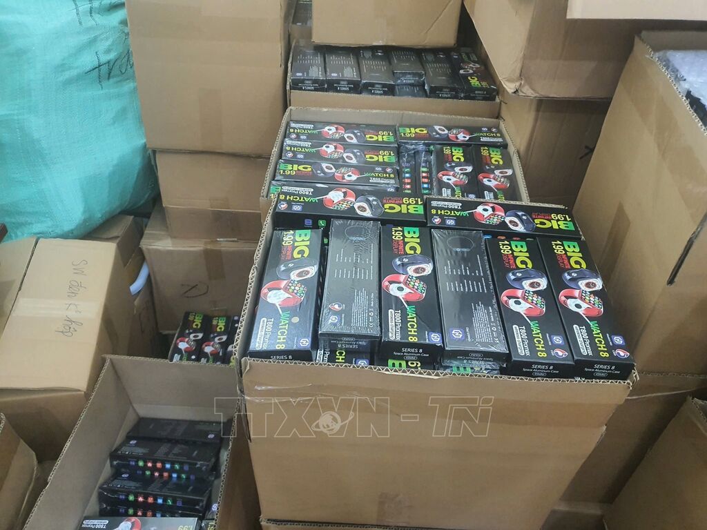 Nắm bắt phương thức, thủ đoạn hoạt động của ổ nhóm trên, Phòng An ninh mạng và phòng, chống tội phạm sử dụng công nghệ cao, Công an thành phố Hà Nội phối hợp với Cơ quan An ninh điều tra tiến hành khám xét nhiều địa điểm là nơi tập kết, cất giữ hàng giả của các đối tượng. Tại hai căn nhà liền kề 4 tầng, xã Tân Triều, huyện Thanh Trì, thành phố Hà Nội, lực lượng chức năng phát hiện và thu giữ số hàng giả quy mô lớn gồm 12.200 chiếc đồng hồ thông minh, 6.800 tai nghe hiệu Marshall, 30 loa Ms Kill Bur II, 1.700 loa Emberton, 850 loa Nillen, 2550 máy hút bụi Fujisu, 900 đồng hồ Omega, 475 đồng hồ Orient, tổng số 25.505 thiết bị.