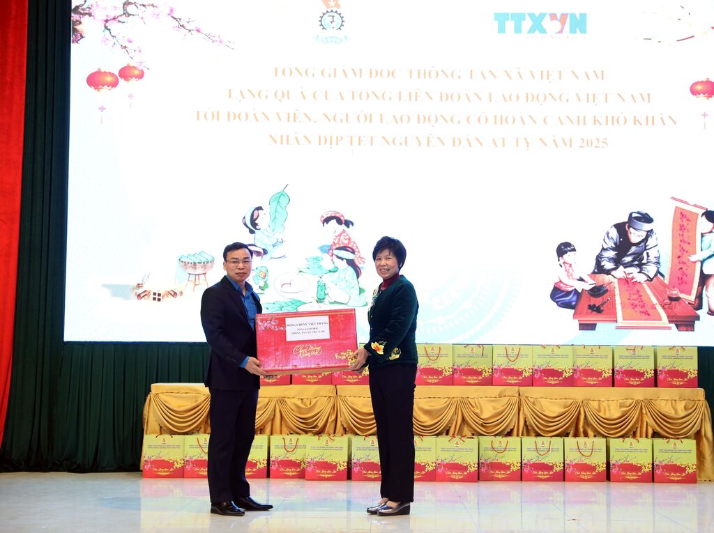 Chiều 10/1, Thông tấn xã Việt Nam phối hợp Liên đoàn Lao động tỉnh Hà Nam tổ chức Chương trình tặng quà của Tổng Liên đoàn Lao động Việt Nam cho đoàn viên, người lao động có hoàn cảnh khó khăn đang làm việc tại các khu công nghiệp tại tỉnh Hà Nam nhân dịp Tết Nguyên đán Ất Tỵ năm 2025.