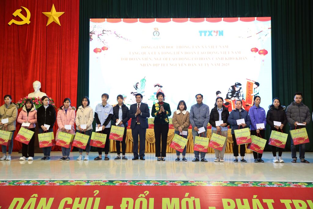 Tổng Giám đốc Thông tấn xã Việt Nam đã trao quà của Tổng Liên đoàn Lao động Việt Nam tặng Công đoàn các khu công nghiệp tỉnh Hà Nam và 50 suất quà cho các đoàn viên, người lao động có hoàn cảnh khó khăn.